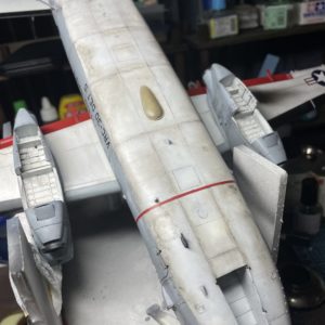 エッチングパーツをつける前に合わせ目を消していきますが、失敗してパーツの一部が欠損してしまいました。