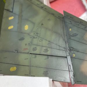 Fー4Eの主脚・前脚や各アクチュエーター、各ドアの裏側にはサフェーサーを塗ります。